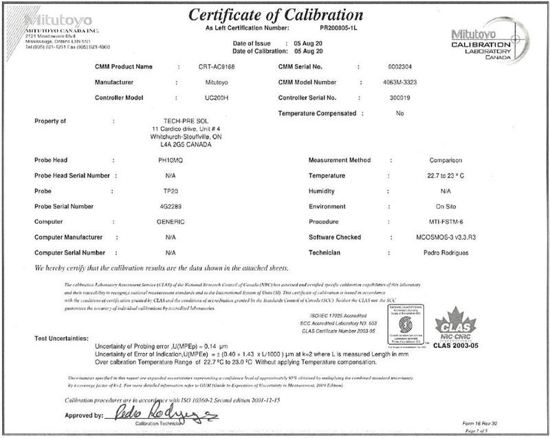 TECH-PRE’s lab is e quipped with a Mitutoyo Apex 916 CMM machine. Equipped with Renishaw PH10 PLUS motorized indexing head MCosmos Software translates 3D models direct to measure.